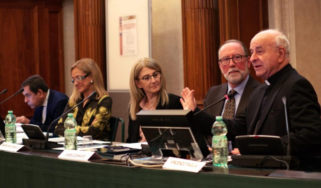 UPFイタリアのカルロ・ゾナート会長によるUPFの活動紹介と、イタリアで行われている平和と公正を推進するプロジェクトの報告に続き、モンシニョール・ヴィンチェンツォ・パグリア大司教をはじめとする、各界の専門家たちによる討議が行われました。