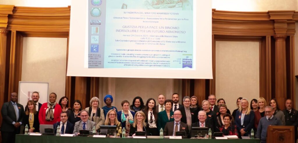 UPFイタリアと世界平和議員連合(IAPP)の共催による専門家会議が2023年10月24日、イタリア上院議会内で開催されました。「国連の日」を記念する同会議は、イタリアのマンフレディ・ポテンティ上院議員と共に開かれ、「平和のための公正:調和ある未来のための永続的な関係性」をテーマに行われました。