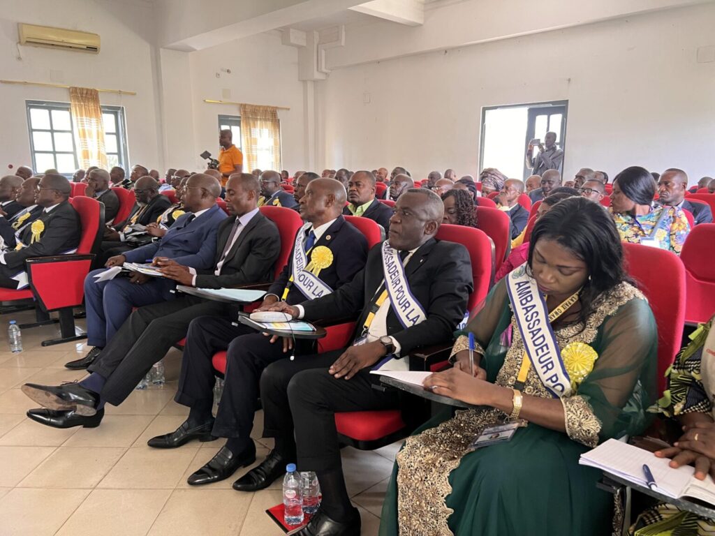 25日には、「団結と平和を実現する地域社会づくりを促進し、コンゴを世界につなごう」と題し、「キュヴェト県指導者会議」が行われました。会議には、地元の各界有識者や平和大使など約150人が参加しました。