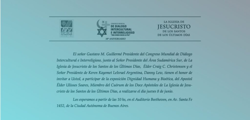 末日聖徒イエス・キリスト教会南米地域法律顧問のデビッド・フロール博士の司会のもと、ユダヤ教保守派のラビであるマルセロ・バテル氏、サイエントロジー・アルゼンチン会長のグスタボ・リバルディ氏、バハイ教に属し平和教育センター創設者を務めるソフラブ・ヤズダニ氏、そしてUPFアルゼンチンのミゲル・ウェルナー会長が議論に加わりました。
