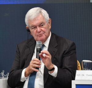 次に、ニュート・ギングリッチ米国元下院議長(=写真左)が発言。「私たちは美しい土地に住んでいると各自が信じている。美しい土地で自由に自分の人生を生きることは、独裁国家で生きるよりも好ましいことだ」と述べました。